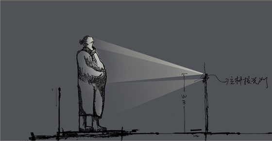 《蒼生》選取五種顏色的燈光,象征金、木、水、火、土,染亮雕塑陣列的不同區(qū)域。五行相生相克,各自獨立,又相互依存,與雕塑作品主題相呼應(yīng)。不同的燈光顏色相互融合,又混合出新的顏色,整個蒼生世界變得絢麗多彩。