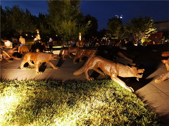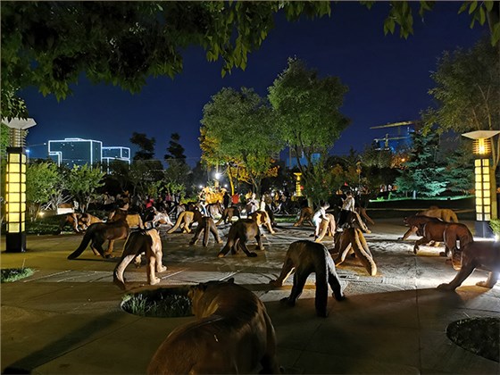 《高山流水》、《狼來了》、《蒼生》等七組雕塑代表作品給大家?guī)砜涨暗囊曈X盛宴與心靈震撼。深刻得表達了生態(tài)與人互相影響,互相升華的合一存在。