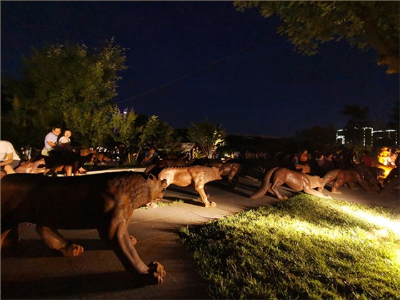 此次雕塑展作品點亮由信達電通捐助設(shè)計,信達合作伙伴羅萊迪思捐助燈具。董事長王春龍先生親臨現(xiàn)場考察,帶領(lǐng)團隊根據(jù)雕塑不同形態(tài)和形象進行燈光設(shè)計。