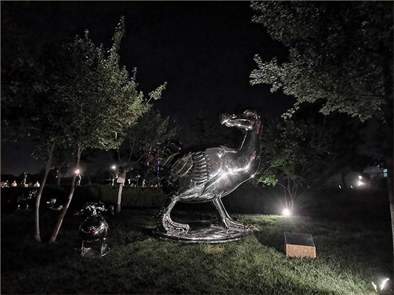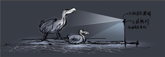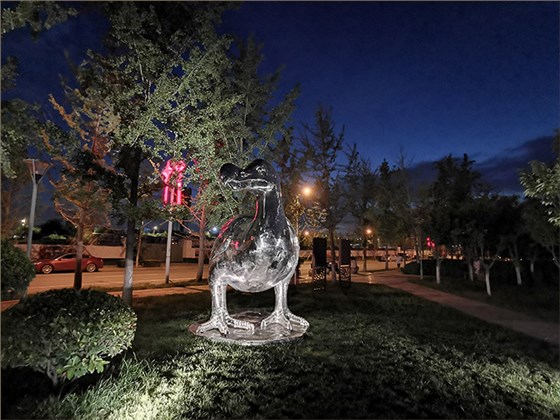 《渡渡鳥》用樹影燈映亮雕塑周圍環(huán)境,以小型投光燈重點強調(diào)雕塑局部,仿佛渡渡鳥又回到了這個世界。