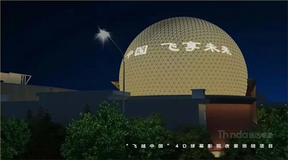 隨著球幕外立面光色切換,“我愛(ài)你中國(guó)”、“飛覽天下飛越中國(guó)”等主題字幕滾動(dòng)播出。為實(shí)現(xiàn)預(yù)期的設(shè)計(jì)效果,信達(dá)團(tuán)隊(duì)多次夜間試燈。