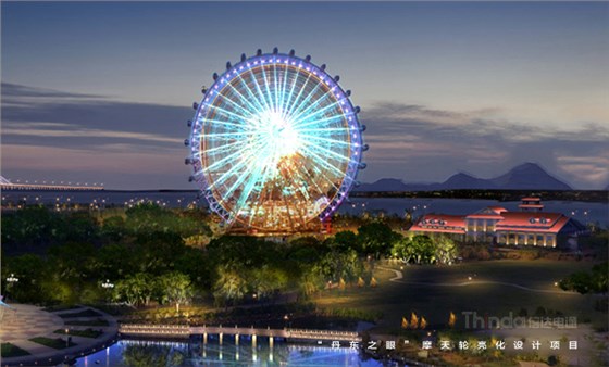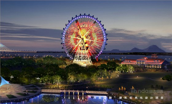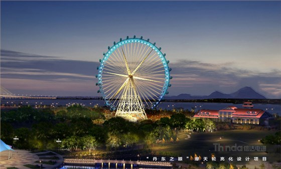 “丹東之眼”是中朝邊境一道亮麗的風景線,信達電通在設計中采用絢麗的燈光和濃重的色彩。設計師通過燈光的動態變化、光色的轉換,創造出一個歡樂、覽勝的燈光樂園。當夜晚降臨,彩燈閃爍,摩天輪一圈圈地劃過點亮丹東最美天際線,顯現出其非凡的魅力!