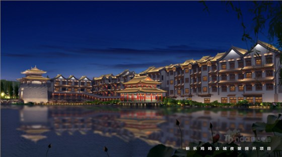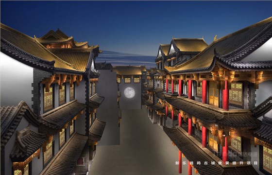 亮化設(shè)計(jì)從宏觀和微觀兩種尺度入手:在宏觀上強(qiáng)調(diào)整體性,建立清晰的夜景結(jié)構(gòu)并區(qū)分主次,體現(xiàn)青磚黛瓦,淡雅風(fēng)華,那種褪盡喧囂之后的寧靜和內(nèi)斂。在微觀上,以人為本實(shí)現(xiàn)照明的舒適性,營造溫馨雅致的光環(huán)境。本案中雞鳴古城亮化設(shè)計(jì)將主入口處城樓及親水樓臺為高亮度區(qū)域,沿街立面烘托商旅氛圍為中亮度,建筑頂部營造靈境、淡雅的光環(huán)境,弱化表現(xiàn)為低亮度區(qū)域。主體光色以暖光呈現(xiàn),靜態(tài)光為主。燈光主要體現(xiàn)其渾厚、大氣的建筑結(jié)構(gòu),打造整體感與形態(tài)美,滿足建筑自身功能和精神需求的同時,突出顯著入口標(biāo)志。以間隔小投光形式呈現(xiàn),突出入口醒目標(biāo)志和節(jié)點(diǎn)設(shè)計(jì)。拒絕大面積重彩潑墨,以投光進(jìn)行小范圍營造,點(diǎn)綴成景,留白處理,避免喧鬧、浮華,營造靜謐、文雅的氛圍。燈光錯落有致,層次分明,有熱鬧活力的商旅氛圍,也有溫馨雅致的古典情懷,使人漫步其中,移步異景,感受她的舒適與雅致。