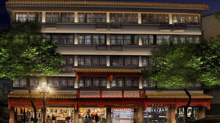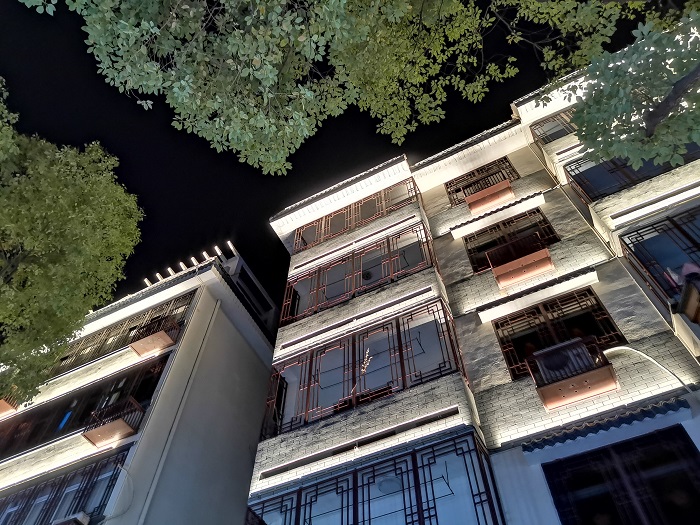 三級建筑照明:以沿街道路低矮居住類建筑為主,定義為三級照明等級,主要表現(xiàn)建筑頂部及立面重要結(jié)構(gòu)光。